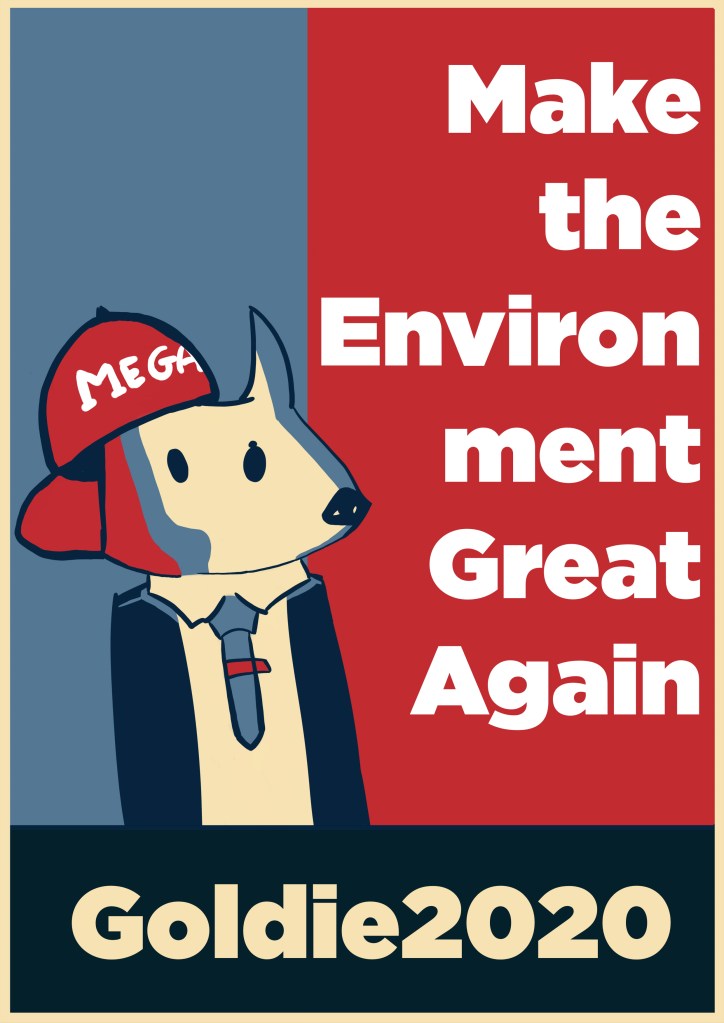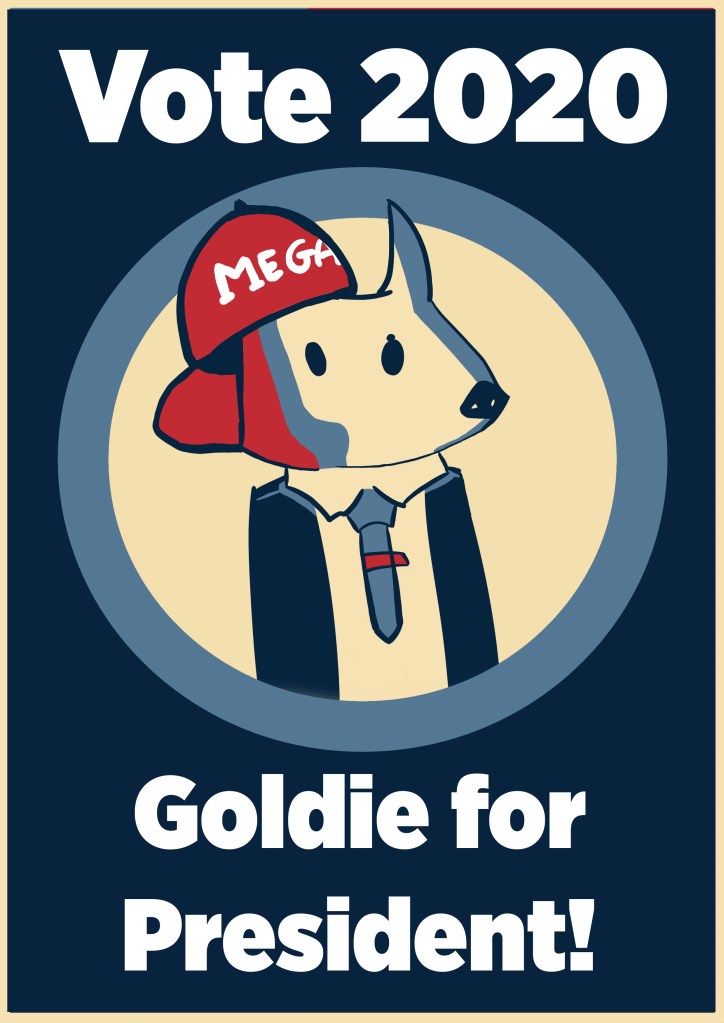 Goldie2020 is a game about a golden retriever who managed to become the president. Determined to live up to his slogan to “Make the environment great again” he comes up with a plan: Revoke all rights to eat other animals. This way all the animals have to get his approval to eat other animals and he can influence the number of animals of each specific kind! “This is a briliant plan, the best plan out of all plans ever made!” says Goldie. Now only to decide who is allowed to eat who…